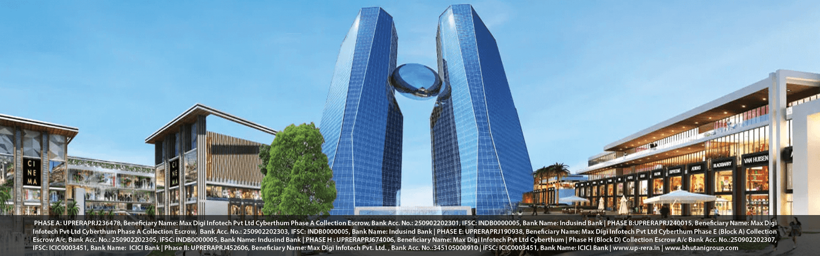 Bhutani Cyberthum project is having a grand retail development in sector 140a Noida. Bhutani Cyberthum project is going to be a unique high street retail shopping destination which will have an artificial lake spread over in 6.5 acres.